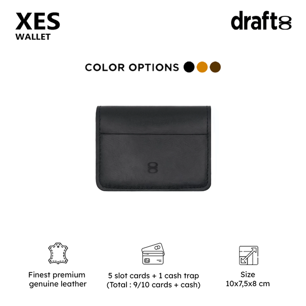Optimized to reduce bulk while maintaining capacity. Five fixed card slots hold 9–10 cards depending on thickness. An external cash strap secures folded bills for quick access.
