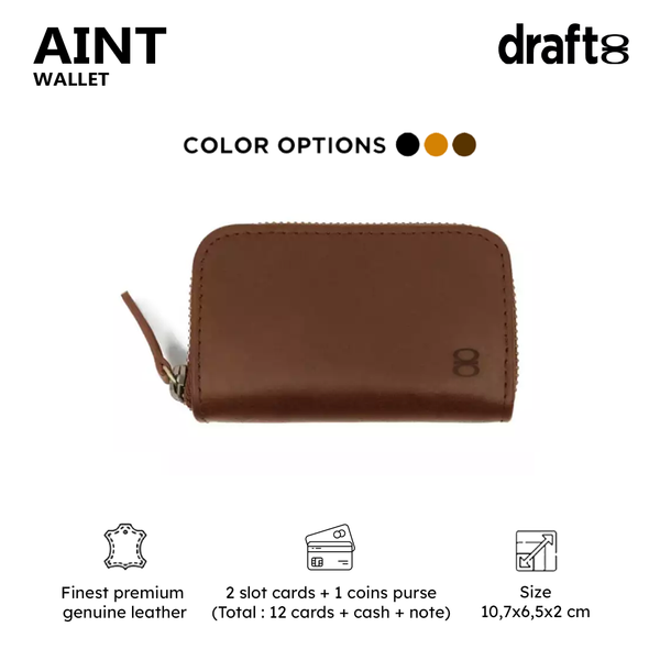 Structured interior with 12 card, dedicated cash storage, and a magnetic coin compartment. Secured by a YKK brass zipper with leather pull strap.