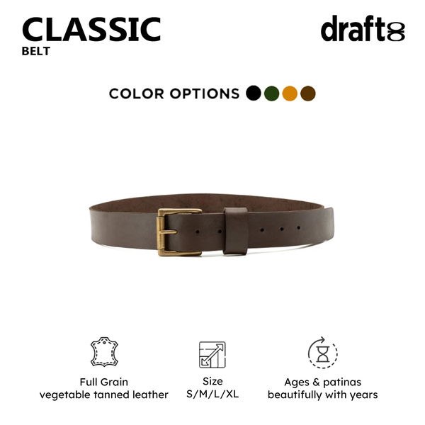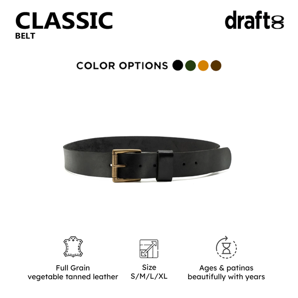 ClassicĀ handmade thick leather belt has been designed to last. The more you wear it, the more broken in and comfortable it becomes ā better looking too.