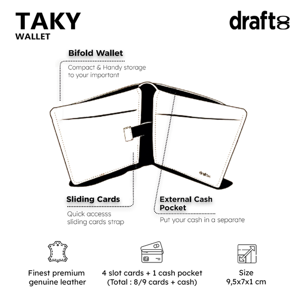 Designed for reduced bulk and efficient organization. Four card slots with integrated sliding pull-strap for quick access. Dedicated cash compartment for folded bills. Holds 8–9 cards plus cash depending on thickness.