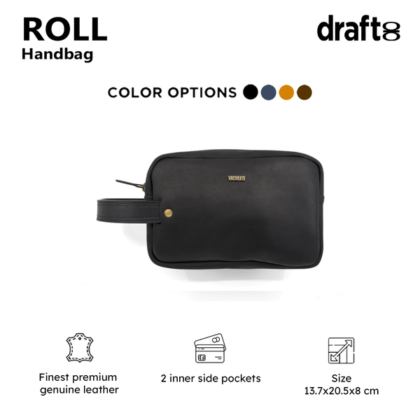 Versatile & Chic toiletry bag, Roll is made from classic genuine cow leather, hand crafted to perfection.